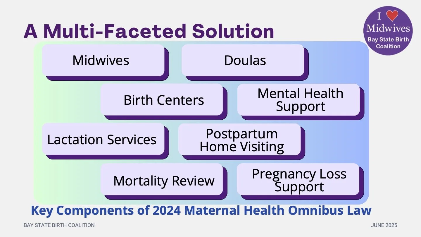 The landmark 2024 Omnibus Maternal Health Law passed the House and Senate with unanimous votes last summer. We are grateful for the support of every legislator who voted in favor, who cosponsored a bill, and who supported their colleagues.